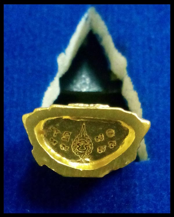 | รายละเอียด | สมเด็จองค์ปฐมรุ่น 5 วัดท่าซุง จ.อุทัยธาน เนื้อทองเหลืองชุบทอง ฐานก้นถ้วย (ช่างธานี) มีมวลสารชนวนสมเด็จองค์ปฐมของหลวงพ่อฤาษีลิงดำ ที่ป้ายชื่อฐานด้านหน้าและฐานด้านหลัง เป็นยันต์ท่านปู่พระอินทร์ และมีคาถาบารมี ๓๐ ทัศ (ย่อ) อยู่โดยรอบ ๔ ด้านเสาซุ้มเรือนแก้ว ด้านซ้ายเป็นยันต์ ๕ ด้านขวาเป็นยันต์เฑาะ ใต้ฐานก้านถ้วย ด้านในพัดยศ : ปิ ( ปิโยเท วะ มนุสสานัง เป็นที่รักของเทวดาและมนุษย์ทั้งหลาย ) บรรทัดบน : พุท ธะ สัง มิ ( พุทธัง ธัมมัง สังฆัง สรณังคัจฉามิ เป็นคาถาปลุกผ้ายันต์พิชัยสงคราม) บรรทัดล่าง : อะ สิ สะ ติ เป็นคาถาพระพุทธเจ้าห้ามอาวุธ ซึ่งอยู่ในยันต์มหาพิชัยสงคราม เป็นบทที่พระพุทธเจ้าทรงตรัส ขณะที่เทวทัตให้นายขมังธนูมาดักยิง แต่ไม่สามารถทำอันตรายพระพุทธองค์ได้ และได้กลับมาศรัทธาเลื่อมใสในที่สุด |