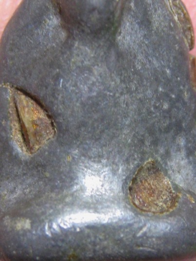 พระร่วงนั่งหลวงพ่อดำ เนื้อชินตะกั่ว (ฝังเขี้ยวหมาป่า) วัดกุฎิ จ.ปราจีนบุรี
