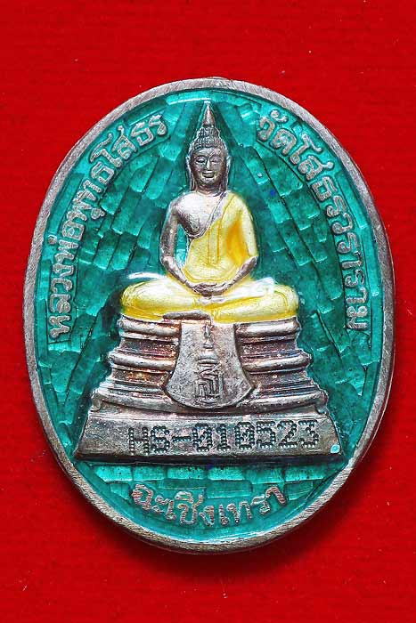 เหรียญหลวงพ่อโสธร เนื้อเงินลงยา สีเขียว รุ่นสร้างพระอุโบสถหลังใหม่ ปี 2538