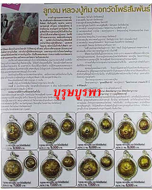 | รายละเอียด | ลูกอมผสมผงพรายกุมาร หลวงปู่ทิม วัดละหารไร่, หลวงปู่โต๊ะ วัดประดู่ฉิมพลี, หลวงพ่อเริ่ม วัดจุกกะเฌอ, หลวงพ่อชื่น วัดมาบข่า ร่วมปลุกเสก ออกวัดโพธิสัมพันธ์ บางละมุง ชลบุรี ลูกอมในรูปภาพมีขนาดโดยประมาณ2เซนติเมตร สภาพสวยงามเนื้อแน่นไม่มีรอยลาน ปัจจุบันหายากแล้ว เคาะเดียวครับ ประวัติการสร้างวัตถุมงคลของวัดโพธิ์สัมพันธ์ เมื่อหลวงพ่อบุญมี อัถปุญโญ ได้มรณะภาพลงเมื่อวันที่ 24 เมษายน พ.ศ.2516 พระประสิทธิ์ ประสิทธิโก รักษาการณ์แทนเจ้าอาวาสวัดโพธิ์สัมพันธ์ในขณะนั้นซึ่งเป็นศิษย์ใกล้ชิดของ หลวงปู่ทิม อิสริโกท่านหนึ่ง หลวงปู่ทิมได้สั่งให้พระประสิทธิ์ ประสิทธิโก จัดทำตะกรุดโทนด้วยเนื้อตะกั่วความยาวประมาณ 11.7 ซ.ม. โดยหลวงปู่ทิมได้สอนแนะนำวิธีการทำ การลงอักขระต่างๆ และการบริกรรมคาถาขณะลงอักขระให้พระประสิทธิ ไปดำเนินการจัดสร้าง มวลสาร ลูกอมหลวงปู่ทิมออกวัดโพธิ์สัมพันธ์ จะมีส่วนผสมของผงพรายกุมาร หลวงปู่ทิม, ผงอิทธิเจ, ผงตรีนิสิงเห, ผงปัถมัง, เส้นเกศาหลวงปู่ทิม, เศษสายสิญจน์, น้ำมันลูกประคำ, น้ำมันพระเจ้าตาก, พระผงที่แตกหักชำรุด, และผงพุทธคุณของหลวงปู่บุญมี นำมาบดผสมให้เข้ากัน เนื่องจากตะกรุดโทนมีน้อย ผงพุทธคุณผสมผงพรายกุมารหลวงปู่ทิมเหลือเยอะจึงนำมาหุ้มที่ตะกรุดโทน แล้วส่วนที่เหลือนำมาปั้นเป็นลูกอมแล้วทาบอร์น บางเม็ดก็จะมีอาทิ เส้นเกศา, เศษสายสิญจน์, ตอกโค๊ตคล้ายเลข ๓ และฝังตะกรุดสาริกา ติดมาอยู่บ้างปะปนกันไป ขนาดของลูกอมก็จะมีหลายขนาด บางเม็ดก็จะมีขนาดเท่ากำปั้นลักษณะของลูกอมวัดโพธิ์สัมพันธ์ เนื้อจะแน่นและแกร่งกว่าวัดละหารไร่ และบอร์นจะคนละโซนกับวัดละหารไร่แตกต่างกันอย่างเห็นได้ชัด เมื่อพระประสิทธิได้ดำเนินการจัดทำขึ้น แล้วเสร็จจึงมีพิธีพุทธาภิเษกขึ้น จะมีอยู่ 2 วาระ วาระที่ 1 ปี 2517 ปลุกเสกหมู่ที่วัดโพธิ์สัมพันธ์ โดยมีหลวงปู่โต๊ะ วัดประดู่ฉิมพลี,หลวงปู่ทิม วัดละหารไร่,หลวงปู่สิม วัดถ้ำผาปล่อง,หลวงปู่คร่ำ วัดวังหว้า,หลวงปู่ม่น วัดเนินตามาก,หลวงพ่อเริ่ม วัดจุกกะเฌอ,หลวงพ่อชื่น วัดมาบข่า และยังมีเกจิอาจารย์ท่านอื่นๆอีกมากมายที่เข้าร่วมปลุกเสกในพิธีนี้ วาระที่ 2 หลังจากพิธีปลุกเสกวาระที่ 1 แล้ว พระประสิทธิ ประสิทธิโก ได้นำวัดถุมงคลของวัดโพธิ์สัมพันธ์ทั้งหมดมาให้หลวงปู่ทิม ที่วัดละหารไร่ ปลุกเสกเดี่ยวเป็นระยะเวลายาวนานถึง 8 เดือน จนถึงวาระสุดท้ายของหลวงปู่ทิมได้อาพาธจนเข้าโรงพยาบาล ณ ศรีราชา รักษาตัวอยู่ 23 วัน ท่านก็มรณะภาพลงเมื่อเวลาประมาณ 23.00 น. ของวันที่ 16 ต.ค. 2518 ที่หน้าหอสวดมน