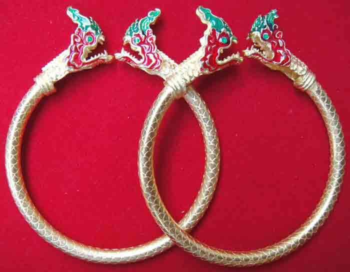 | ชื่อพระเครื่อง | (((2 วงคู่)))กำไลข้อมือพญานาค เศียรคู่ลงยาสีแดง-น้ำเงิน แบบบิดข้างใส่ ผิวลายเส้น เนื้อทองเหลืองเคลือ |