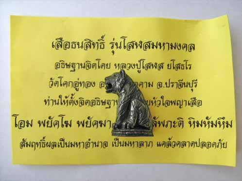 | ชื่อพระเครื่อง | ***เสือโลหะธนสิทธิ์ เนื้อเมฆพัตร หลงปู่โสฬส ยโสธโร วัดโคกอู่ทอง ปราจีนบุรี*** |