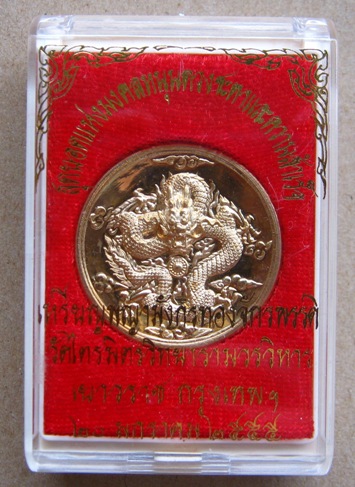 เหรียญกันชงพญามังกรทองจักรพรรดิ์ วัดไตรมิตร ปี2555 หมายเลข693 หลวงปู่บัวร่วมเสก พร้อมกล่องเดิม