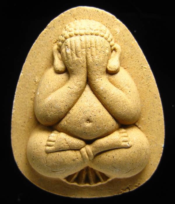 **พระปิดตาปลดหนี้ เนื้อขมิ้นเศก ฝังตะกรุด 3 ดอก หลวงปู่เจือ หมายเลข 650 เคาะเดียวแดง**