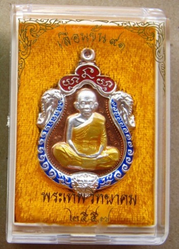 เหรียญเสมา3ประกบองค์เงินกนกเงินลงยา หลวงพ่อคูณ ปี57รุ่นเลื่อนขั้น91สร้าง1,435เหรียญ เลข1325พร้อมกล่อ