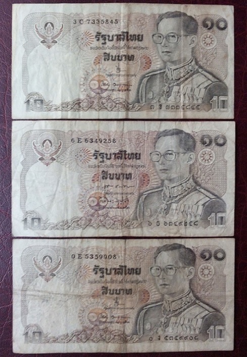 ธนบัตรในหลวง 10บาท แบบ12 หลังพระบรมรูปทรงม้า 3ใบ...เคาะเดียวแดง...