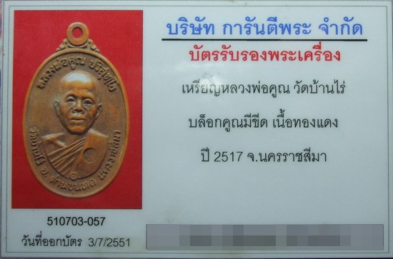 - หลวงพ่อคูณปี2517 บล็อคคูณมีขีด พร้อมบัตรรั...