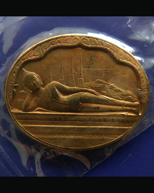 15.เหรียญพระนอน หลัง ภปร. พิธีใหญ่วัดโพธิ์ ฉลองในหลวงพระชนมายุครบ 5 รอบ พ.ศ. 2530 ซองเดิมๆ