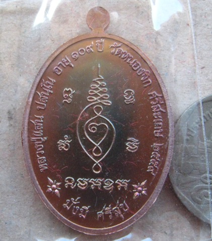 เหรียญอายุยืน หน้าอรหันต์ หลวงปู่แสน วัดบ้านหนองจิก จ ศรีสะเกษ ปี2559เลข825 เนื้อทองแดงรมมันปู+กล่อง