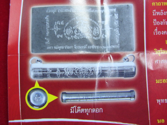 | รายละเอียด | ตะกรุดพระพายสะกดทัพ หลวงปู่แผ้ว ปรโว มหาพิธีจักรพรรดิ์ตราธิราช ๑๐๘ คณาจารย์ หลวงปู่แผ้วอธิฐานจิตตลอดพรรษา แล้วนำเข้าพิธีใหญ่อีกครั้งครับ มหาพิธีจักรพรรดิ์ตราธิราช 108 คณาจารย์ หลวงปู่แผ้ว ปวโร ออกวัดหนองพงนก ทำพิธีปลุกเสก เมื่อวันเสาร์ ที่ 13 ตุลาคม 2550 รายนามพระนั่งปรกอธิฐานจิต มีโค๊ตหลวงปู่ 1.หลวงปู่แผ้ว ปวโร วัดกำแพงแสน 2.พระครูปราการรักษาภิบาล วัดใหม่ปีนเกลียว 3.หลวงพ่อแย้ม วัดสามง่าม 4.หลวงตาละมัย วัดอรัญญิก 5.หลวงพ่อรอด วัดสันติกาวาส 6.พระอาจารย์ชุบ วัดนางพญา 7.พระเทฑวรเวธี วัดบรมวงศ์อิศรวราราม 8.พระครูเสาร์ วัดดอนหญ้านาง 9.หลวงพ่อเอื้อน วัดวังแดงใต้ 10.หลวงพ่อเอียด วัดไผ่ล้อม 11.หลวงปู่ทิม วัดพระขาว 12.หลวงพ่อหวล วัดพุธไธสวรรค์ 13.พระราชภัทรธาดา วัดบางกระเบา 14.พระราชปริยัติสุธี วัดป่าเลไลยก์ 15.หลวงพ่อช่วง วัดจันทราวาส 16.หลวงพ่อท้วม วัดปากน้ำชุมพร 17.พระครูศิริวัฒนาภรณ์ วัดโสมศิริวัฒนาราม 18.หลวงพ่อบุญช่วย วัดหน้าค่าย 19.พระครูไพโรจน์ วัดท่าสนุก 20.หลวงพ่อเสน่ห์ วัดคงคารามวรวิหาร 21.หลวงพ่อพัว วัดห้วยเสือ 22.หลวงพ่อคง วัดเขากลิ้ง 23.หลวงพ่อสมจิต วัดโพธิ์พระใน 24.หลวงพ่อสมศักดิ์ วัดลาดโพธิ์ 25.พระราชรัตนะมุนี วัดพระประฐมเจดีย์ 26.หลวงพ่ออับ วัดท้องไทร 27.พระครูโอภาสประชานุกูล วัดสว่างชาติฯ 28.หลวงพ่อลำยอง วัดสุนทรประดิษฐ์ 29.พระอาจารย์ไพรินทร์ วดพระศรีรัตนมหาธาตุ 30.หลวงพ่อย้า วัดถ้ำเขาแก้ว 31.พระครูสมศักดิ์ วัดหน้าพระเมรุ 32.หลวงพ่อกอไผ่ วัดสระมณฑล 33.หลวงพ่อแวว วัดพนัญเชิงวรวิหาร 34.หลวงพ่อพูน วัดบ้านแพน 35.หลวงพ่อเฉลิม วัดพระญาติ 36.หลวงพ่อแม้น วัดหน้าต่างนอก 37.หลวงพ่อฉะอ้อน วัดแหลมหิน 38.หลวงพ่อแบน วัดใหม่นพรัตน์ 39.พระอธิการจำลอง วัดทุ่งหันตา 40.หลวงปู่บุญมา วัดถ้ำโพงพาง 41.หลวงพ่อนูญ วัดคงคาราม 42.หลวงพ่อเลิม วัดทองตุ้มน้อย 43.หลวพ่อโปร่ง วัดถ้ำพรุตะเคียน 44.หลวงพ่อเสนาะ วัดป้อม 45.หลวงพ่อโวก วัดเขาบันไดอิฐ 46.หลวงพ่อจำปา วัดบุญทวี 47.หลวงพ่อวิชัย วัดไสกระดาน 48.อาจารย์จิบ วัดป้อม 49.หลวงพ่ออุทัย วัดเกาะตาพุฒ เป็นต้น |