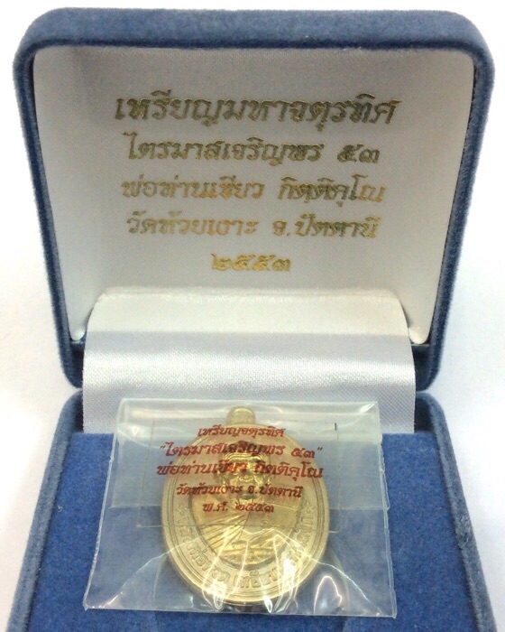 เหรียญมหาจตุรทิศ ไตรมาสเจริญพร53 หลวงปู่ทวด พ่อท่านเขียว วัดห้วยเงาะ ปี53 เนื้ออัลปาก้าหน้าทองฝาบาตร