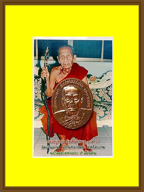 | รายละเอียด | ***เหรียญรูปเหมือนครึ่งองค์ หลังพระมหาเจดีย์เนื้อทองแดง หลวงปู่หมุน ฐิตสีโล วัดบ้านจาน อมตะเถระ ฐิตสีโล อายุยืน หมุนโชค หลวงปู่หมุน ฐิตสีโล วัดบ้านจาน จ.ศรีสะเกษ อมตะเถระ 5 แผ่นดิน ศิษย์สายสมเด็จลุน แห่งนครจำปาศักด์ประเทศลาว พิธีเททองหล่อและพุทราภิเษกกลางแจ้งรับพลังแสงสุริยเทพ(กลางแจ้ง) ครั้งแรก ครั้งสุดท้าย ณ วัดบ้านจาน จ.ศรีสะเกษ โดยพระเกจิอาจารย์ชื่อดัง 7 รูป เมื่อ 12 เม.ย.46 เวลา 12.00 น. ...“อมตะเถระ ฐิตสีโล อายุยืนหมุนโชค” คือมงคลนามที่หลวงปู่หมุนตั้งเอง ทั้งยังบอกอีกว่า “ของ ๆฉันสร้างเองกัลป์มือใครมีไว้บูชาหมุนโชคมาร่ำรวยตลอดเวลา ทำมาค้าขึ้นไม่มีวันจน สัมมาอาชีพอย่างไรก็รุ่งเรือง เจริญในลาภยศสรรเสริญ จะมีชื่อเสียงหอมขจรขจาย ขอให้เป็นคนดี คิดดี ทำดี คุณพระจะรักษาเทวดาจะคุ้มครอง ...แม้นว่าถ้าฉันตายไปของ ๆ ฉันจะขลังกว่านี้หลายร้อยเท่า น้ำลาย ไอปาก ลมปรานที่ประจุไปด้วยพลังจิตอันเข้มขลังของฉัน ย่อมเป็นหนึ่งบ่มีสอง ครบเครื่องเป็นองค์พระ ดีทั้งนอก ดีทั้งในฝากไว้ให้แผ่นดิน ให้เลื่องชื่อลือนาม ลือเรื่องถึงเมืองแมน จึงนับเป็นสุดยอดแห่งวัตถุมงคลของหลวงปู่หมุน หาใครเทียบเทียมไม่ได้อีกแล้วในยุคนี้ นี่คือปริศนาธรรมว่าหลวงปู่หมุนท่านได้ญาณสมาบัติระดับใด ระดับพระเถระ 5 แผ่นดิน ผู้ช่ำชองด้านอักขระวิธี สำเร็จคัมภีร์ทั้ง 5 ทั้งเพียบพร้อมด้วยชาญสมาบัติขั้นสูง ช่ำชองเข้าออกญาณวสี พุทธคุณย่อมไม่ธรรมดา อีกทั้งยังสำเร็จวิชาธาตุ 4 ซึ่งเป็นสุดยอดเคล็ดวิชาสายสำเร็จลุนแห่งนครจำปาสัก ผู้เรื่องชื่อลือนามถึงสยามประเทศในยุคนั้น ผู้ที่ร่ำเรียนวิชาจากท่านแล้วห้ามลาสิขาบทตลอดชีวิต ถ้าผิดคำครูจะโดนฟ้าผ่าตายกลางวันแสก ๆ หรือไม่ก็ถูกควายชนตาย มิอาจบอกได้ว่าผงพุทธคุณที่ท่านลบได้จะเทียบเท่าผงของสมเด็จพระพุฒาจารย์โต พรหมรังสี เพชรน้ำหนึ่งแห่งกรุงรัตนโกสินทร์หรือไม่ แต่ท่านก็ร่ำเรียนการลบผงมาจากหลวงปู่สี ฉันทสิริ ลูกศิษย์สมเด็จพุฒาจารย์โต ก่อนหน้านี้ เมื่อต้นปี 2544 ท่านเคยเปรย ๆ ว่า การลบผงนี้ยากมากฉันเคยทำทีหนึ่งแล้วโดยร่วมกับพระหลายรูปทำพิธีที่โบสถ์ ไม่ใช่ง่าย ๆ ...อาจจะกล่าวได้ว่าการจัดสร้างรุ่น “อมตะเถระอายุยืนหมุนโชค” ถือเป็นรุ่นแรกและรุ่นสุดท้ายของวัดบ้านจาน (บ้านเกิดหลวงปู่หมุน) ที่ได้รับฉันทานุมัติและเมตตาจิตจากหลวงปู่หมุนโดยตรง โดยตั้งใจมอบให้กับวัดบ้านจาน ปัจจัยที่ได้จะนำไปบูรณปฏิสังขรณ์ภายในวัด ส่วนหนึ่งจะนำไปจัดซื้อที่ดินถวายวัดป่าหนองหล่ม อ.วัฒนานคร จ.สระแก้ว ซึ่งหลวงปู