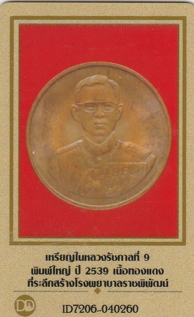 | ชื่อพระเครื่อง | เหรียญในหลวงร.9 พิมพ์ใหญ่ ปี2539+บัตรรับรอง |