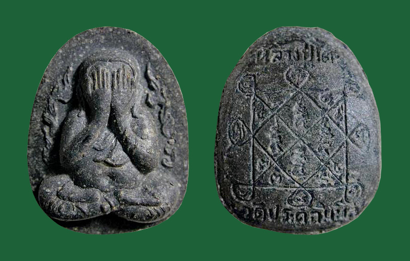 พระปิดตากนกข้าง หลวงปู่โต๊ะ วัดประดู่ฉิมพลี กทม ปี 22 เนื้อผงใบลาน ฝังตะกรุดเงินคู่ พร้อมใบเซอครับ