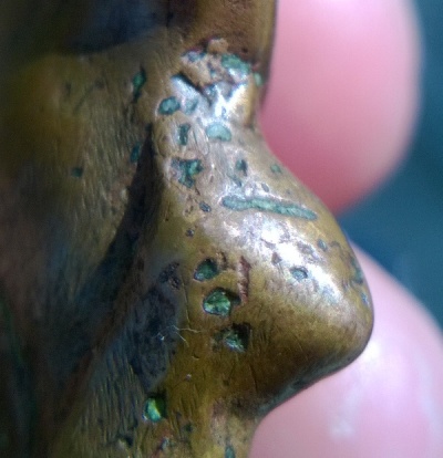 ดูง่ายหล่อโบราณ มีช่วงที่หล่อไม่เต็มทำให้เห็นเนื้อในพระแท้ๆ เลยครับ