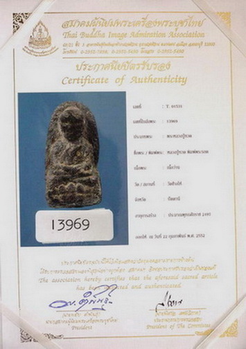 พระหลวงปู่ทวด ปี 2497 เนื้อว่าน รุ่นแรก พิมพ์พระรอด พร้อมใบเซอร์