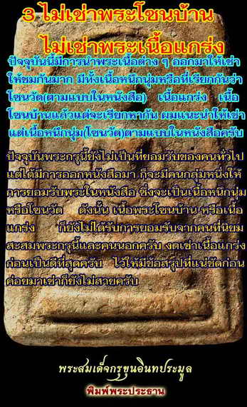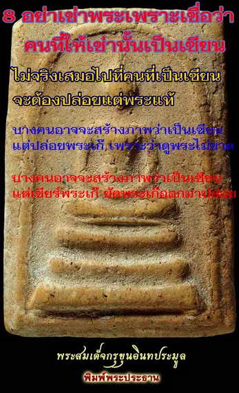 ขอบคุณมากครับ ช่วงนี้ผมดวงไม่ค่อยดี เลยเช่าพระแหลกลานหลายเว็บ กะว่าจะเอามาหนุนหัวนอน ส่วนใหญ่พระสมเด็จ เตี่ยก็บอกว่าให้เช่าพระใหม่ แต่ผมไม่เชื่อเตี่ย เพราะคิดว่าเว็บประมูลพระต่างๆนั้น จะดูรูปพระก่อน แล้วถึงปล่อยให้คนประมูล ว้า...โง่ฉิบ ดีนะครับที่เข้ามาอ่านก่อน เดี๋ยวผมจะยกเลิกรายการเช่าพระเนื้อแกร่งเป็นมันทั้งหมด โดยเฉพาะสมเด็จหลวงปู่นาค และขุนอิน