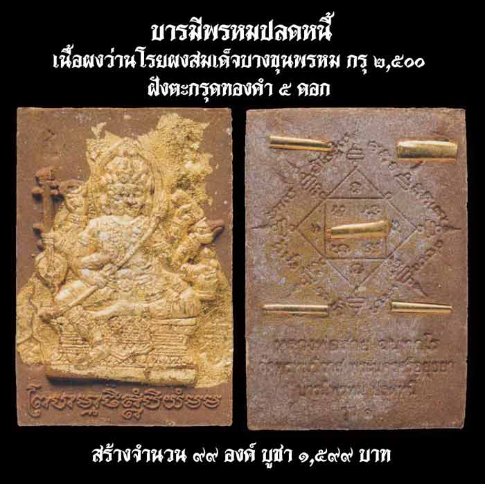 1.เนื้อผงว่านโรยผงสมเด็จบางขุนพรหม กรุ ๒๕๐๐ ฝังตะกรุดทองคำ ๕ ดอก