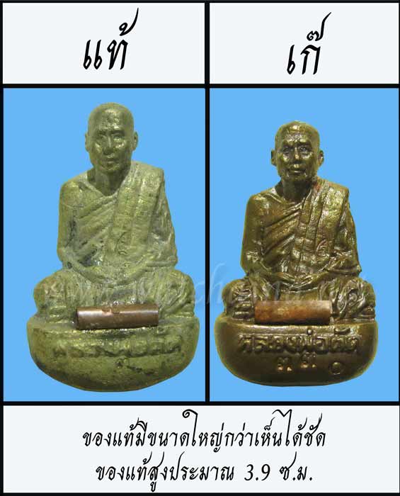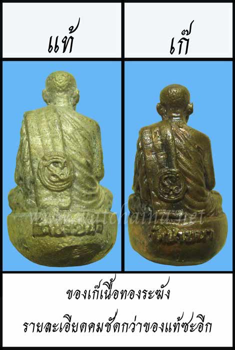 ลองสังเกตุของเก๊ครับรายละเอียดการหล่อ ทั้งมือ จีวร ตัวหนังสือต่างๆ คมชัดกว่าของแท้ซะอีกครับ