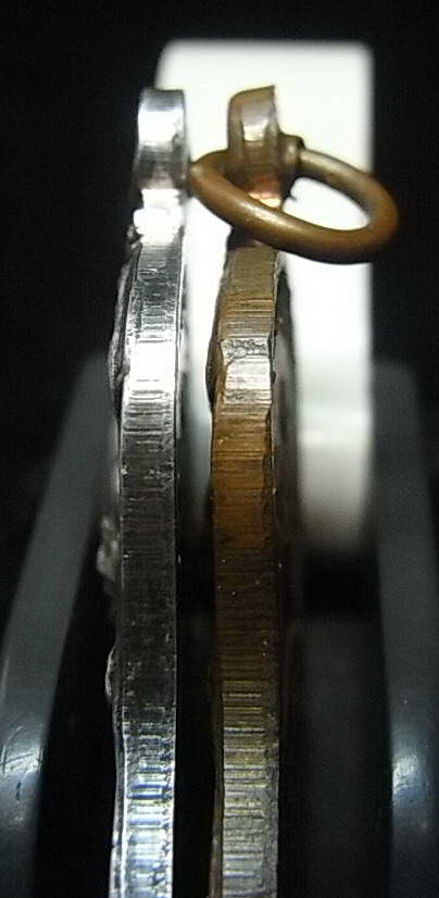 เหรียญเงินเหรียญนี้มิได้แกล้งเก่าแต่ประการใด(เก่าจริงครับ)เนื้อเงินซึ่งอ่อนกว่าเนื้อทองแดงตัวตัดจึงชัดเจนมาก จำตัวตัดให้แม่นๆนะครับไม่มีโค๊ตก็แท้ได้ และดูความเก่าให้ดีๆนะครับเดี๋ยวเจอแกล้งเก่า