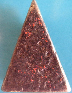 เป็นพระเนื้อดิน สีส้มๆ แล้วลงสีดำทับ ไม่เก่าครับ