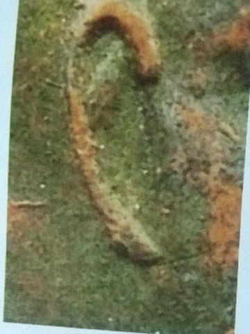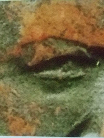 รูปที่ 6 ใบหูด้านซ้ายปรากฏเส้นพิมพ์แตกวิ่งผ่าน นิยมเรียกว่าพิมพ์หูขีด