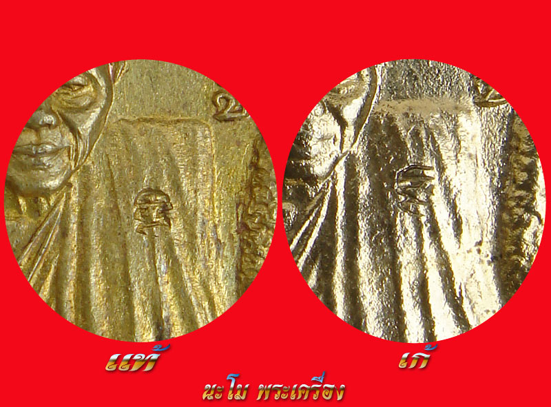 เปรียบเทียบเหรียญสิริมงคลเนื้อทองเหลืองฝาบาตรแท้/เก้ หลวงพ่อคูณ