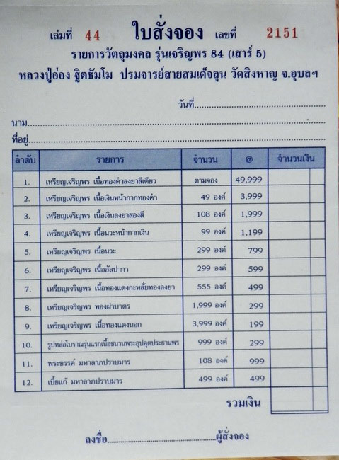 หัวข้อ: เปิดจองวัตถุมงคล รุ่นเจรญพร ๘๔ เสาร์๕ หลวงปู่อ่อง ฐิตธัมโม วัดสิงหาญ ศิษย์กรรมฐานแพง