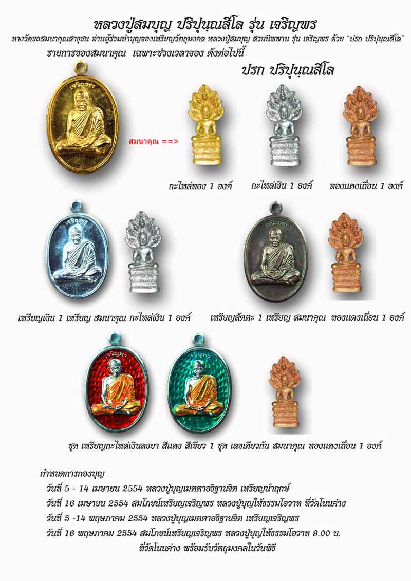 รายการเหรียญเจริญพร เปิดจอง 1 เมษายน 2554- เป็นต้นไป