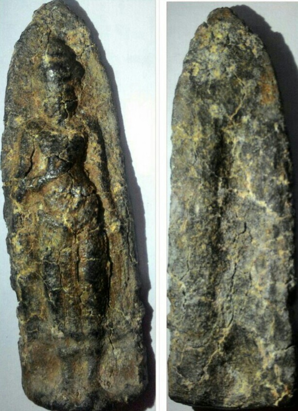 พระร่วงยืนเนื้อชินเขียว หลังรางปืน