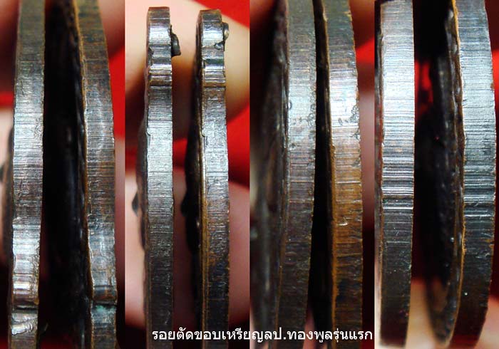 เนื้อทองแดงรมน้ำตาล รุ่นแรกนี้มี 2 พิมพ์ เหรียญด้านหน้าเป็นรูปหลวงปู่นั่งเต็มองค์เหมือนกัน ต่างกันที่เหรียญด้านหลังเป็นรูปพระปิดตา(นิยม)และรูปอัฐบริขาร เท่าที่ทราบยังไม่พบเหรียญเก๊ออกมาหากิน เข้าใจว่าอาจจะถอดพิมพ์ได้ไม่เหมือนหรือไงไม่ทราบ ส่วนเนื้อเงินเห็นมีอยู่พิมพ์เดียวคือพิมพ์หลังเป็นพระปิดตา(นิยม) เมื่อพระเก๊ยังไม่ได้ออกมาหากิน เราก็มาศึกษารอยตัดขอบเหรียญกันก่อนจะ้ไม่โดน และเชื่อว่าปัจจุบันที่ยังทำไม่ได้คือ รอยตัดขอบเหรียญ เมื่อมีตัวอย่างรอยตัดขอบเหรียญแล้วก็จะไม่เหนียวแน่นยิ่งขึ้น copy ภาพทุกกระทู้ไปเก็บไว้ใน folder ไ ด้เลย อนุญาตครับ ช่วยกันเผยแพร่ต่อๆกันไป เป็นภูมิคุ้มกัน........