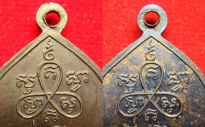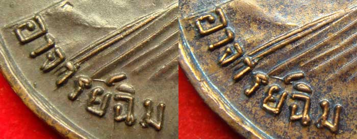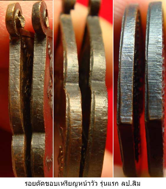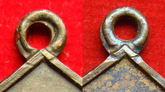 ภาพแรก ด้านหน้าขอบบนหูเหรียญมีรอยปั๊มกระแทกเหมือนกันทุกเหรียญ