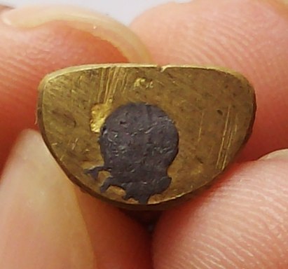 ช่วยหน่อยคับ ไม่รู้ที่ไหน ก้นอุดอะไรสักอย่าง(ไม่ใช่โลหะ) เนื้อออกทองเหลืองแก่ทอง องค์เล็กๆ ประมาณข้อนิ้วก้อย