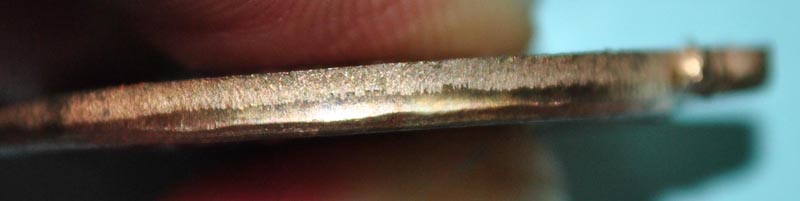 3.เส้นบล็อกแตกด้านหลังเหรียญ ของปลอมจะเป็นเส้นใหญ่เกินไปเพราะเกิดจากการจงใจให้มีเส้น