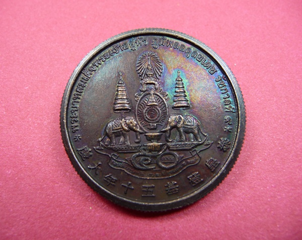เหรียญที่ระลึกฉลองครองราชย์ 50 ปี (เหรียญโป๊ยเซียน โพว เทียน ตัง เข่ง หรือ เหรียญ 50 สมาคมแซ่) ครับ