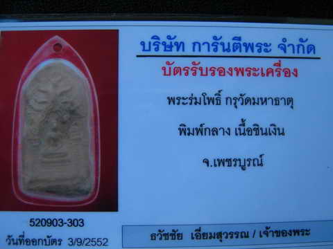 หัวข้อ: พระร่มโพธิ์ กรุวัดมหาธาตุ พิมพ์กลาง เนื้อชินเงิน จ.เพชรบูรณ์ พร้อมบัตรG