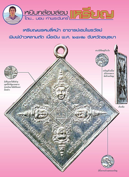 วันนี้เด็กหนุ่มไฟแรง ขอเสนอ เหรียญพรหมสี่หน้า อาจารย์เฮงไพรวัลย์ พิมพ์ข้ามหลามตัด เนื้อเงิน พ.ศ.2472