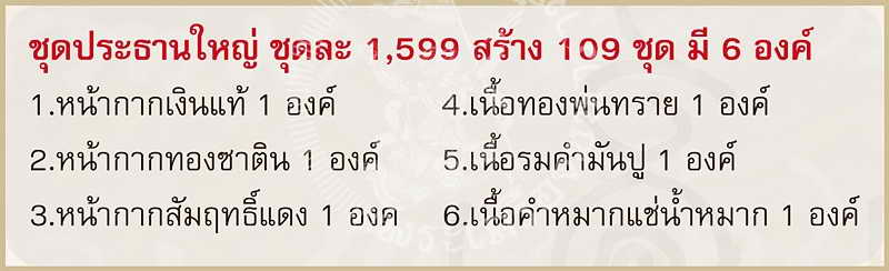 -พระสิวลี เนื้อคำหมากหน้ากากทองพ่นทราย และเนื้อทองซาติน (อยู่ในชุดประธาน)