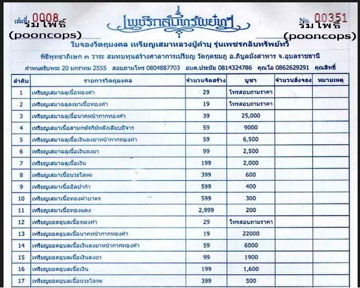 หัวข้อ: เปิดจองแล้ว.......!!! สุดยอดวัตถุมงคล เหรียญเสมาเพชรกลับหลวงปู่คำบุ รุ่นแรก