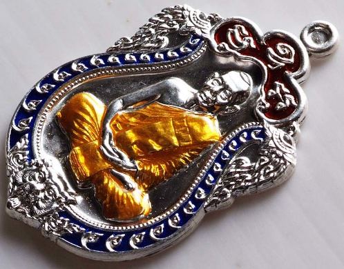 1.เหรียญเงินหน้าเงินปะฉลุลงยา 3 สี สร้าง 1,272 เหรียญ ราคา 3,500 บาท