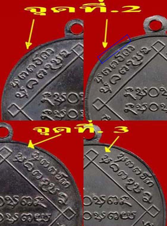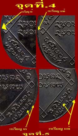 จุดที่. 5 ตรงขอบเหรียญด้านล่าง ระหว่าง 4 - 5 นาฬิกา เหรียญ เก๊จะมีเส้น และ มีขี้กลากตรงพื้นเหรียญ ครับ.... เหรียญจะไม่มีขี้กลาก และจะมีเส้นขนแมวเส้นเล็กๆ บางๆ ประปราย ครับ