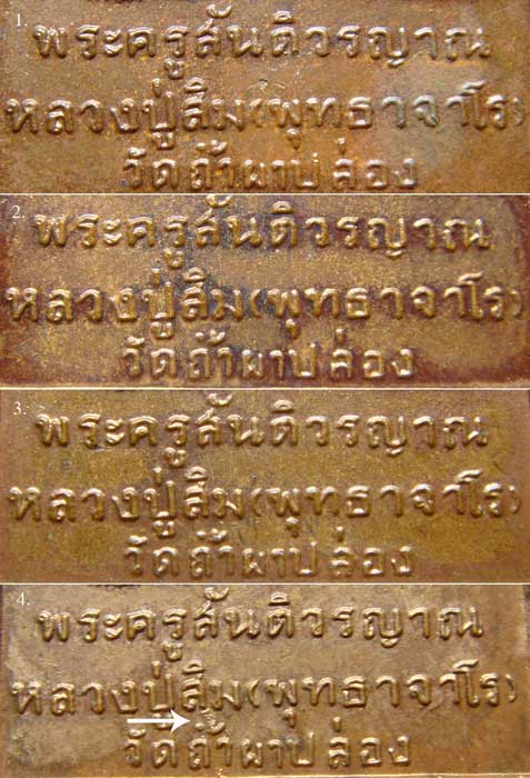 อย่างรุ่นนี้ด้านหน้าพระพุทธที่ฐานติดขอบเหรียญล่างจะมีเนื้อเกินติดมา ดูภาพตัวอย่างตามลูกศรชี้ และเหรียญด้านหลัง รูปเหมือนหลวงปู่ ตัวหนังสือระหว่าง หลวงปู่สิมแถวกลางติดกับวัดถ้าผาปล่องแถวล่าง"สิม-ถ้ำ"จะมีขี้กลากขึ้นเป็นกลุ่ม ให้ดูตามลูกศรชี้ และที่ตาทั้ง 2 ข้างของเก๊ไม่มีลูกตาถอดมาไม่ติด ให้ดูภาพตัวอย่าง.....