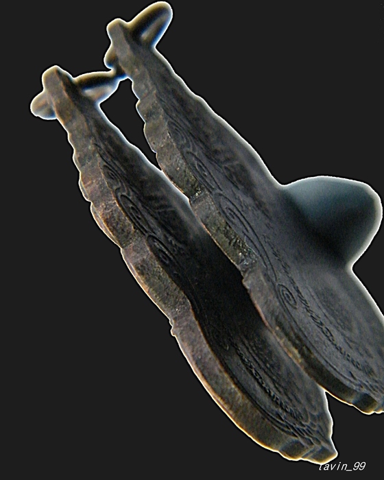 พอดีไปค้นๆเจอ แล้วเอามาส่องเปรียบเทียบกันดูความแตกต่างกันของทั้ง2เหรียญนี้ เหรียญด้านซ้ายมือจะหนากว่าและความคมของตัวหนังสือเลขยันต์ต่างๆเหรียญด้านซ้ายมือจะคมกว่า