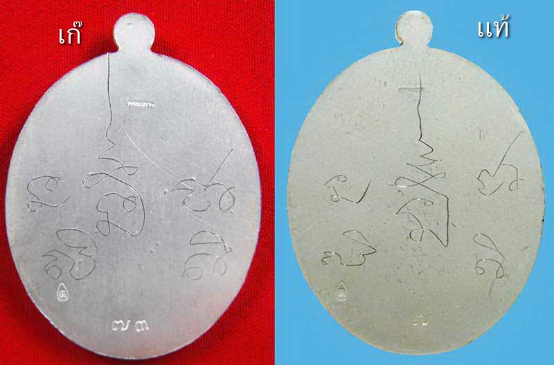 จากลิงค์ที่ลงให้ชมดังกล่าว ผมขออธิบายเพิ่มเติมแบบนี้นะครับ เหรียญที่โดนโหวตเก๊นั้น มีการจัดทำขึ้นหลังจากเหรียญแท้ทั้งหมดออกให้บูชาเรียบร้อย และเหรียญชุดนี้ได้รับความนิยมมาก จึงมีคนที่โลภมากคิดชั่วทำเพิ่มขึ้นมา แล้วให้ใครก็ไม่ทราบจารด้านหลังผมจึงตั้งข้อสังเกตุดังนี้