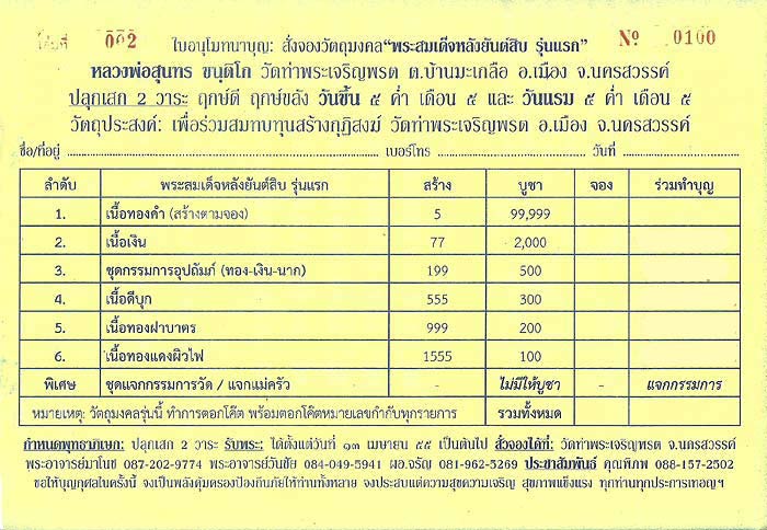 ยอดการสร้าง จำนวนน้อยมากๆ พิธีพุทธาภิเษก ๒ วาระ ฤกษ์ดี ฤกษ์ขลัง