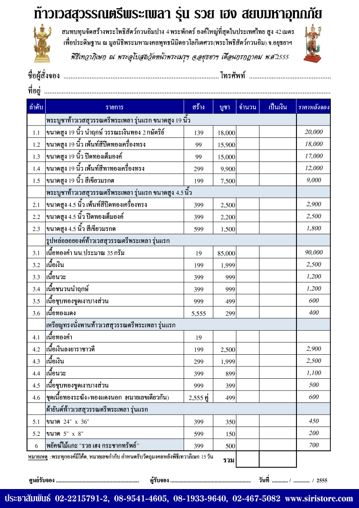 และปิดท้ายด้วยรายการจัดสร้างและราคาบูชาครับ