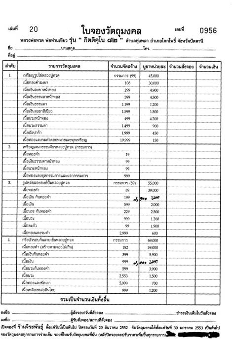 ตัวแทนจอง ในเขต จังหวัด ยะลา ปัตตานี และ นราธิวาส ครับ 0840680188 นาย พจนันท์ งามวรรณากร ธ.กสิกรไทย สาขา ยะลา เลข บัญชี 2562548117 ครับ สนใจสอบถาม ยังมีรายการราคาจองแบ่ง อยู่ได้บ้าง หลายรายการ ใกล้หมดแล้วครับ รับพระเร็ว ส่ง พระไวครับ