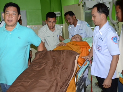 ศูนย์ข่าวนครราชสีมา - “หลวงพ่อคูณ” อาพาธ ลูกศิษย์พร้อมทีมแพทย์ด่านขุนทดนำส่งรักษาที่ รพ.มหาราชนครราชสีมาเป็นการด่วน หลังกรำงานรับญาติโยมมากในช่วงเทศกาลวันวิสาขะ ด้านแพทย์เผยเป็นไข้มา 2 วันแล้ว ก่อนเสียงแหบมีเสมหะมากในหลอดลม คาดเป็นภาวะหลอดลมอักเสบ รักษาโดยให้ยาปฏิชีวนะเพื่อฆ่าเชื้อ เผยเอกซเรย์ปอด หัวใจ และอวัยวะอื่นๆ ปกติ เบื้องต้นให้พักที่โรงพยาบาล 2-3 วันก่อนประเมินอาการอีกครั้ง