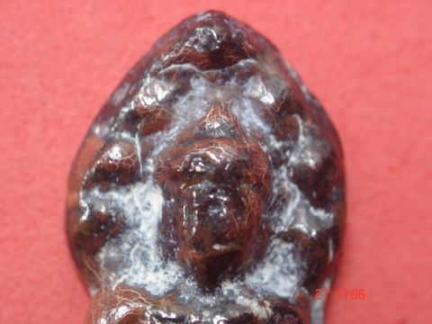 คราบพระสนิมแดงที่แท้ ไม่ควรจะเป็นคราบคล้ายแป้งสีขาวจับอยู่บนผิวเนื้อแบบนี้ ดูเผินๆถึงจะมีรอยรานใยแมงมุม แต่ก็ไม่เหมือนของแท้ คราบพระสนิมแดง ควรจะเป็นคราบตระกรันของแคลเซียม หรือถ้าเป็นคราบกรุก็ควรเป็นสีขาวออกเหลืองหม่นๆ