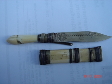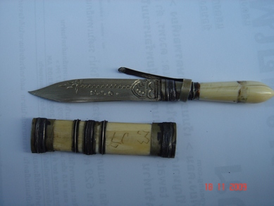 มีอยู่ 1 ด้ามเหมือนกันค่ะความยาวประมาณ 4 นิ้ว? เป็นของพระ วัดจังหวัดกาญจนบุรีค่ะ จำชื่อ และ วัดไม่ได้ ท่านยังมีชีวิตค่ะ ไว้จะถามเจ้าของที่ให้ไว้อีกที